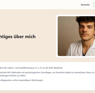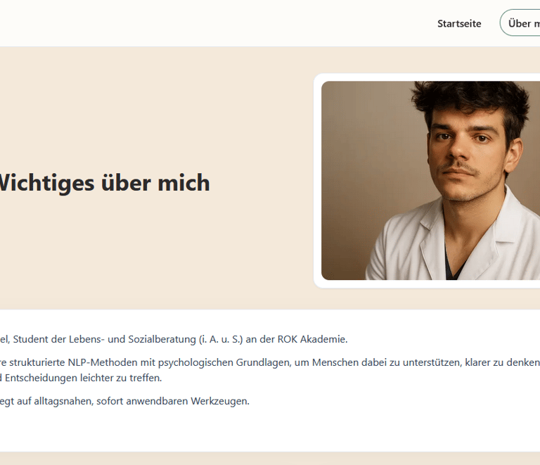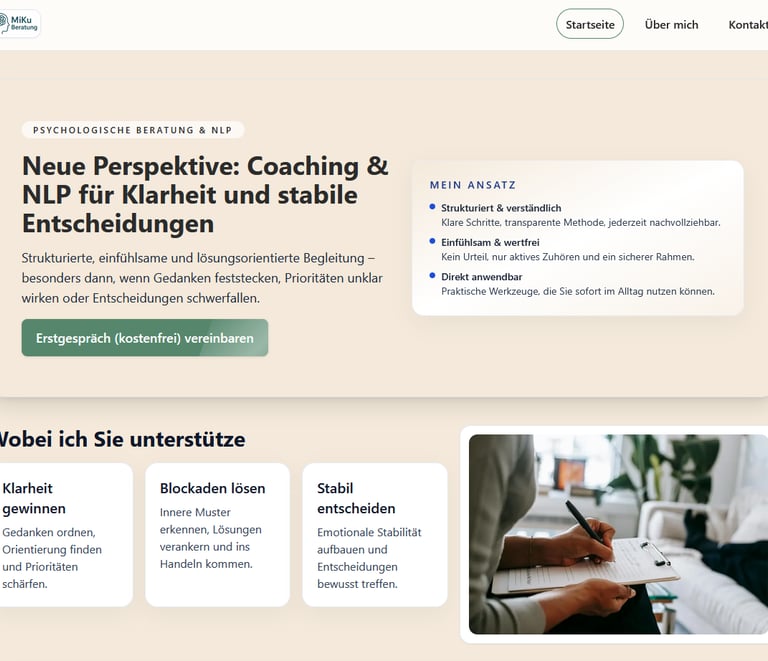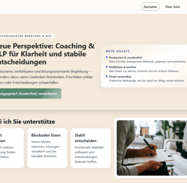 - Fokus: psychologische Beratung und NLP, klare Mailto-CTA.