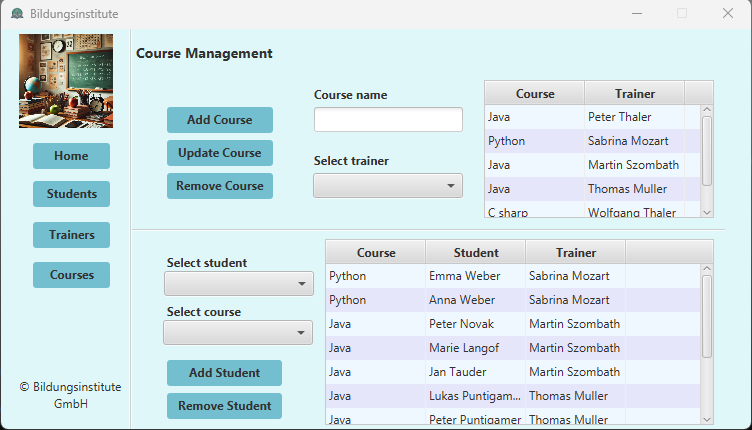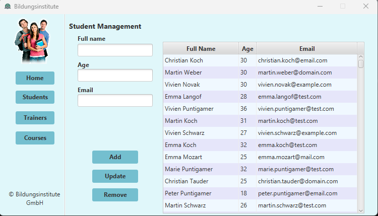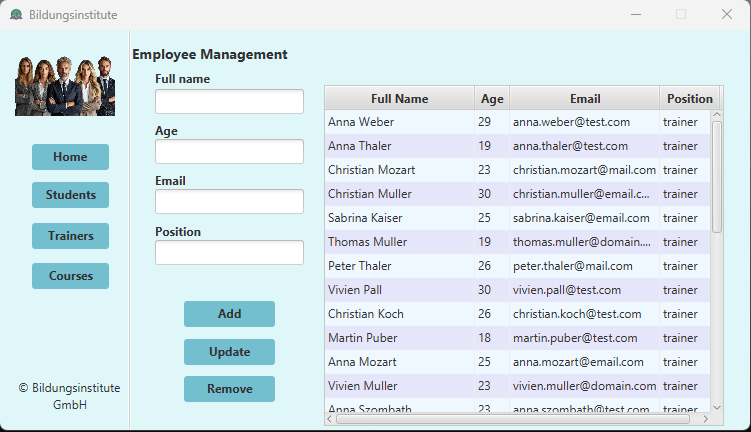 One of the main advantages of this software is its simplicity. The user interface is intuitive and clear, enabling even less tech-savvy users to quickly master all the program's functionalities. Whether you need to add a new course, update student information, or edit employee details, everything is as clear as possible.