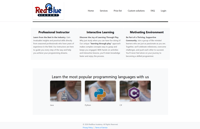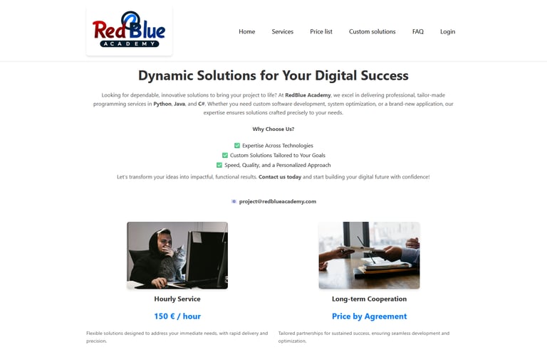 Die Anwendung basiert auf einem leistungsstarken Backend mit Django sowie einem responsiven Frontend mit React. Diese moderne Technologie-Kombination sorgt nicht nur für eine hohe Leistung, sondern auch für ein reibungsloses Nutzererlebnis – sowohl für Schüler als auch für Administratoren. So bietet die RedBlue Academy eine zuverlässige Lösung für die Anforderungen des heutigen, dynamischen Bildungsumfelds.
